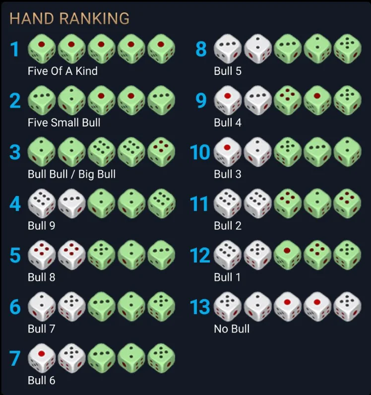 Nilai kartu ini dapat lihat dari penjumlahan 2 buah kartu dengan mengambil angka belakangnya saja. Setiap pemain dimeja permainan akan diberikan tiga buah kartu pada awal putaran dan dapat saling bertaruh atau menaikan taruhan untuk mengambil kartu keempat.